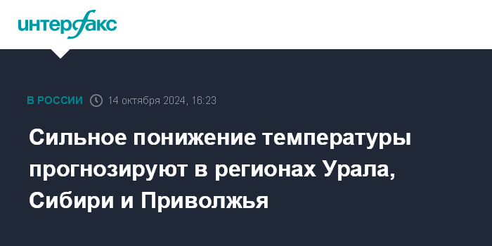 Сильное понижение температуры прогнозируют в регионах Урала, Сибири и Приволжья