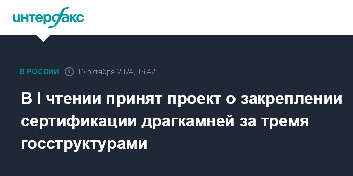 Комитет также отмечал, что правительство предлагает перенести планируемый срок аккредитации органов, осуществляющих подтверждение соответствия драгоценных камней, с 1 марта 2025 года на 1 сентября 2025 года. Это изменение также должно быть учтено в окончательной версии законопроекта, считают в думском комитете.