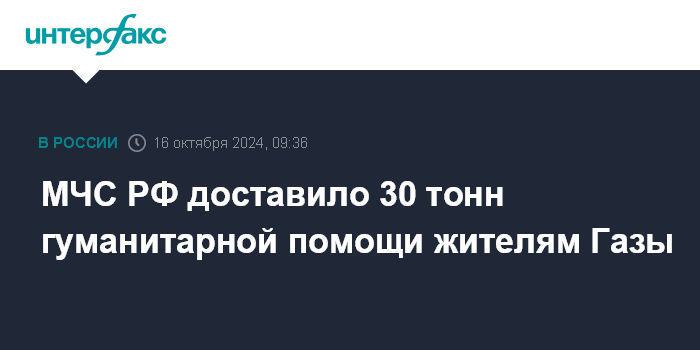 МЧС РФ доставило 30 тонн гуманитарной помощи жителям Газы