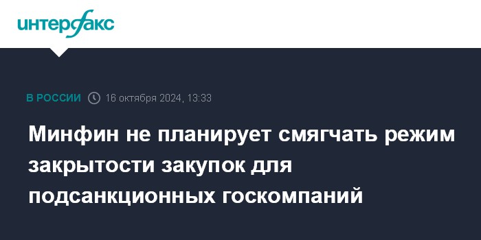 Минфин не планирует смягчать режим закрытости закупок для подсанкционных госкомпаний