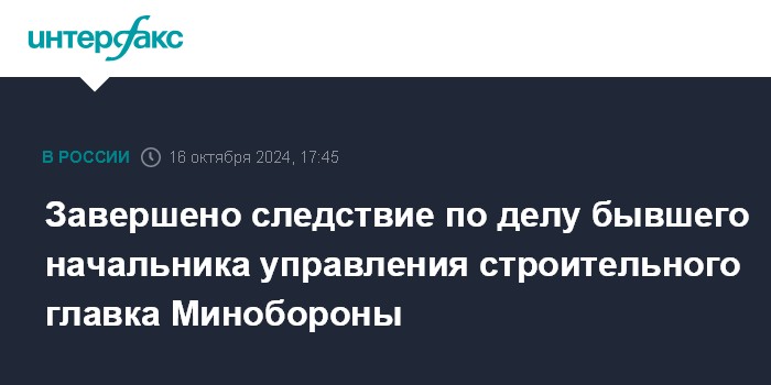 Завершено следствие по делу бывшего начальника управления строительного главка Минобороны