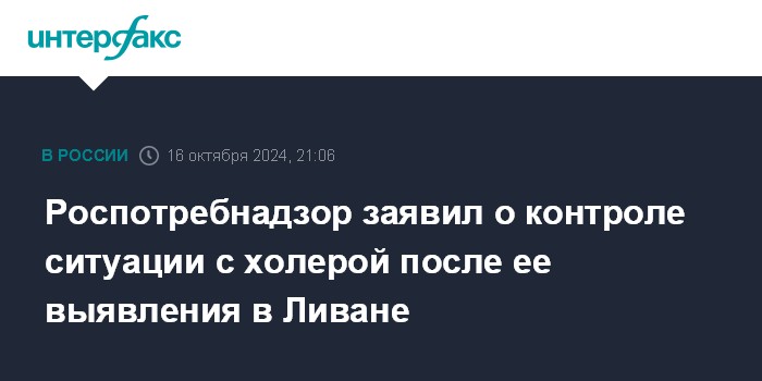 Роспотребнадзор заявил о контроле ситуации с холерой после ее выявления в Ливане