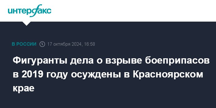 Фигуранты дела о взрыве боеприпасов в 2019 году осуждены в Красноярском крае