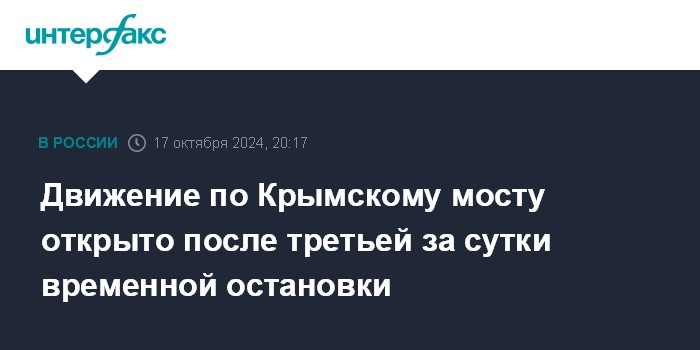 Движение по Крымскому мосту открыто после третьей за сутки временной остановки