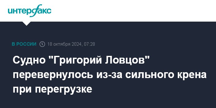 Москва. 18 октября. INTERFAX.RU - Грузовое судно "Григорий Ловцов" перевернулось на юге Сахалина из-за крена при перегрузке, заявил глава региона Валерий Лимаренко.