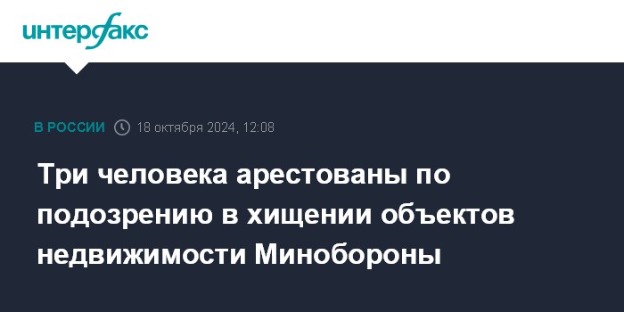 Три человека арестованы по подозрению в хищении объектов недвижимости Минобороны