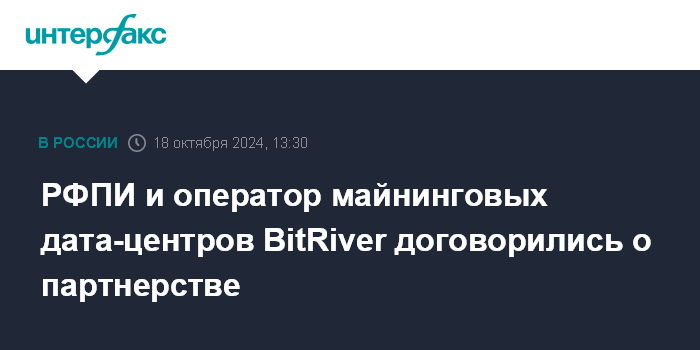 РФПИ и оператор майнинговых дата-центров BitRiver договорились о партнерстве