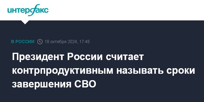 Президент России считает контрпродуктивным называть сроки завершения СВО