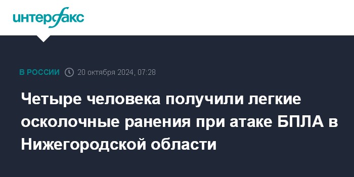 Четыре человека получили легкие осколочные ранения при атаке БПЛА в Нижегородской области