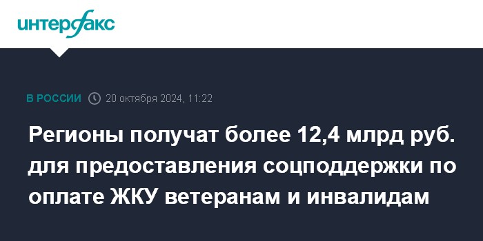 Регионы получат более 12,4 млрд руб. для предоставления соцподдержки по оплате ЖКУ ветеранам и инвалидам