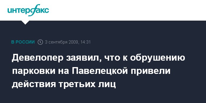 Москва. 3 сентября. INTERFAX.RU – К обрушению подземной парковки в одном из четырех офисных зданий бизнес-зоны "Павелецкая", девелопером которых выступает структура Финансовой корпорации "Открытие", могут быть причастны третьи лица, заявляет собственник территории застройки. Эксперты же полагают, что к катастрофе привели дешевая рабочая сила и дешевые строительные материалы, используемые подрядчиком.