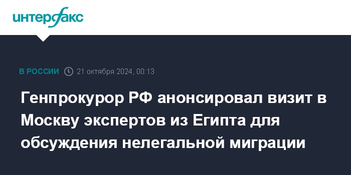 Генпрокурор РФ анонсировал визит в Москву экспертов из Египта для обсуждения нелегальной миграции