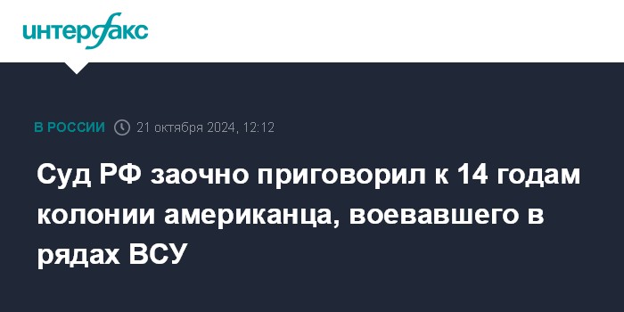 Суд РФ заочно приговорил к 14 годам колонии американца, воевавшего в рядах ВСУ