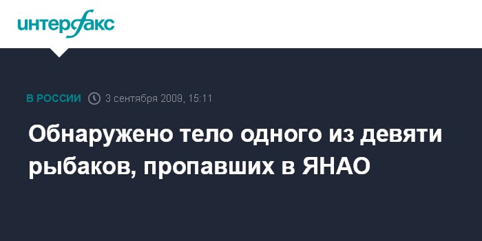 Москва. 3 сентября. INTERFAX.RU – В Ямало-Ненецком автономном округе в четверг днем найдено и опознано тело рыбака из рыболовецкой бригады, пропавшей 1 сентября.