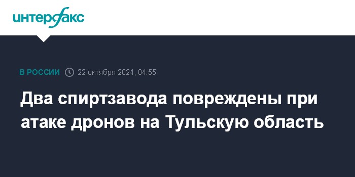 Два спиртзавода повреждены при атаке дронов на Тульскую область