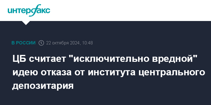 ЦБ считает "исключительно вредной" идею отказа от института центрального депозитария