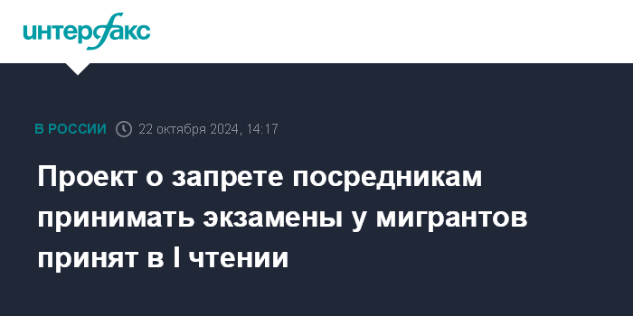 Проект о запрете посредникам принимать экзамены у мигрантов принят в I чтении