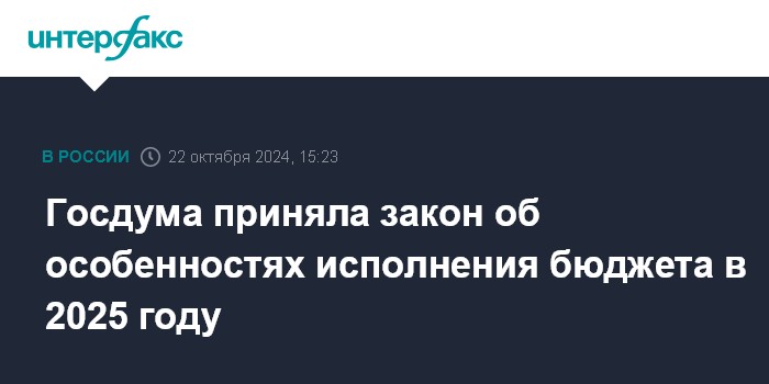 Госдума приняла закон об особенностях исполнения бюджета в 2025 году