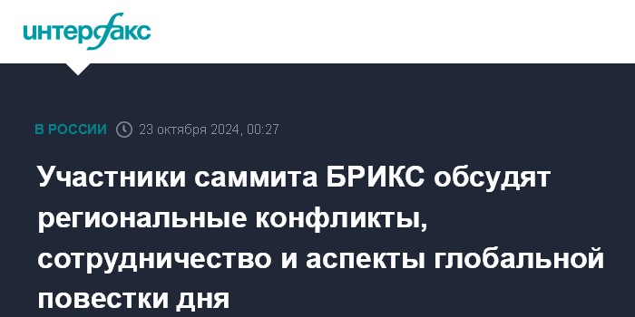 Участники саммита БРИКС обсудят региональные конфликты, сотрудничество и аспекты глобальной повестки дня