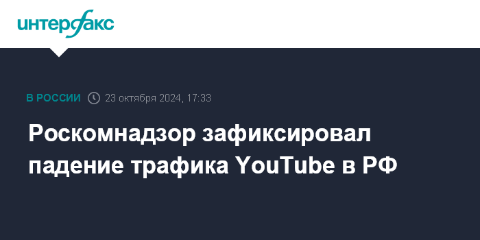 Москва. 23 октября. INTERFAX.RU - Роскомнадзор (РКН) наблюдает падение трафика у YouTube в сетях фиксированной связи (Google Global Cache, GGC), а также его значительный рост у отечественных аналогов - VK и RuTube, сообщил руководитель ведомства Андрей Липов.