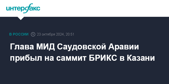 Глава МИД Саудовской Аравии прибыл на саммит БРИКС в Казани