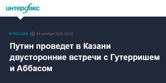 Путин проведет в Казани двусторонние встречи с Гутерришем и Аббасом