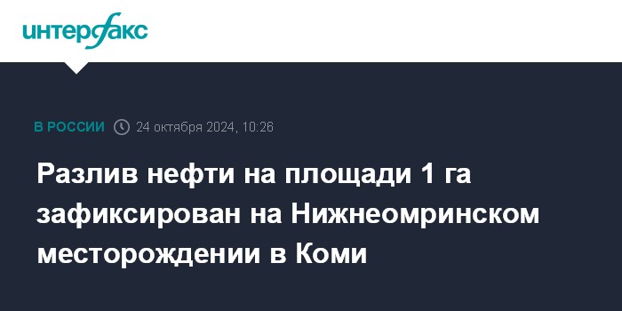 Разлив нефти на площади 1 га зафиксирован на Нижнеомринском месторождении в Коми