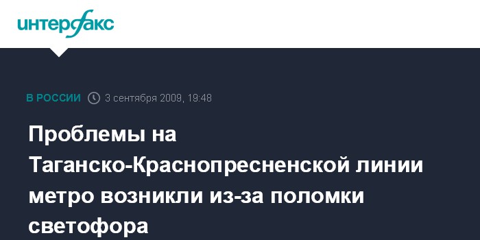 Проблемы на Таганско-Краснопресненской линии метро возникли из-за поломки светофора