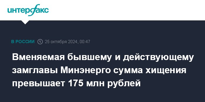 Вменяемая бывшему и действующему замглавы Минэнерго сумма хищения превышает 175 млн рублей