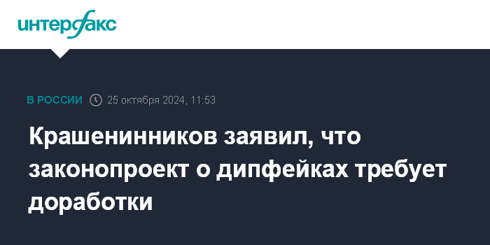Крашенинников заявил, что законопроект о дипфейках требует доработки