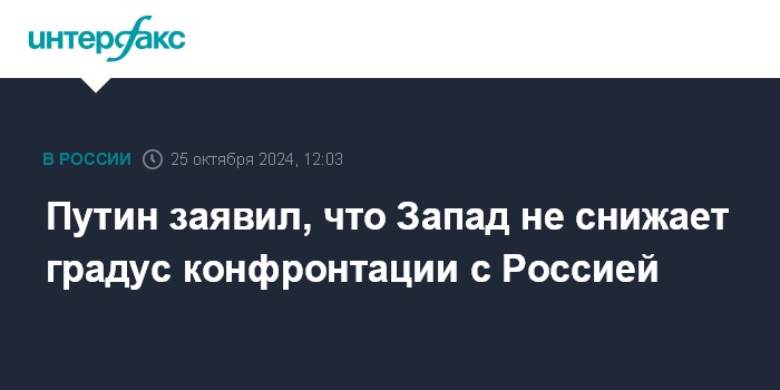 Москва. 25 октября. INTERFAX.RU - Президент Владимир Путин заявил, что Запад не снижает градус конфронтации с Россией, продолжает поставки вооружения Киеву, однако российские войска продвигаются по всем направлениям на линии соприкосновения.