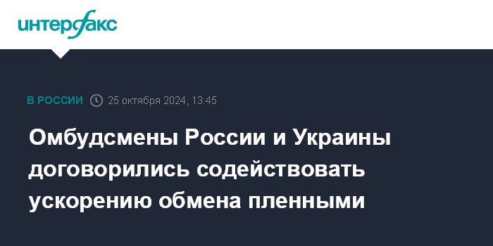 Омбудсмены России и Украины договорились содействовать ускорению обмена пленными