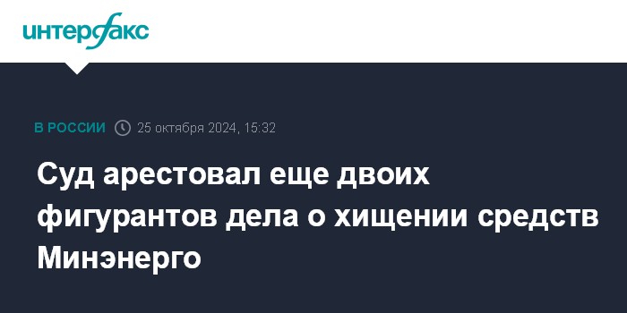Суд арестовал еще двоих фигурантов дела о хищении средств Минэнерго
