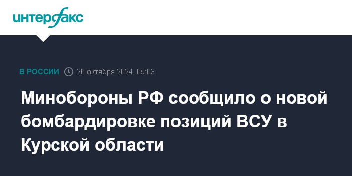 Минобороны РФ сообщило о новой бомбардировке позиций ВСУ в Курской области