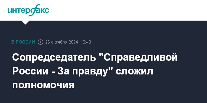 Сопредседатель "Справедливой России - За правду" сложил полномочия