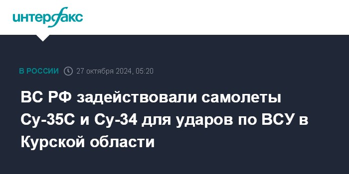 ВС РФ задействовали самолеты Су-35С и Су-34 для ударов по ВСУ в Курской области
