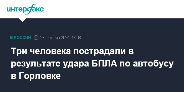 Москва. 27 октября. INTERFAX.RU - Трое жителей пострадали в результате удара беспилотника по маршрутному автобусу в Горловке Донецкой народной республики, сообщил мэр города Иван Приходько.