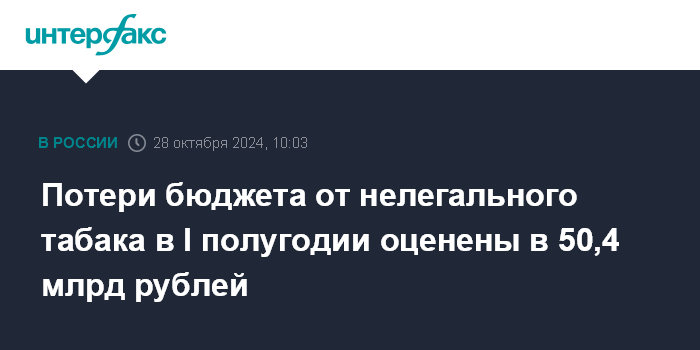 Москва. 28 октября. INTERFAX.RU - Потери федерального бюджета от оборота нелегального табака в первом полугодии 2024 года составили 50,4 млрд рублей, сообщила Ассоциация малоформатной торговли со ссылкой на оценки Национального научного центра компетенций в сфере противодействия незаконному обороту промышленной продукции (ННЦК).