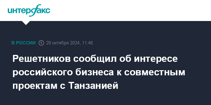 Решетников сообщил об интересе российского бизнеса к совместным проектам с Танзанией