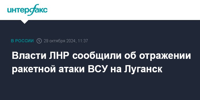 Власти ЛНР сообщили об отражении ракетной атаки ВСУ на Луганск