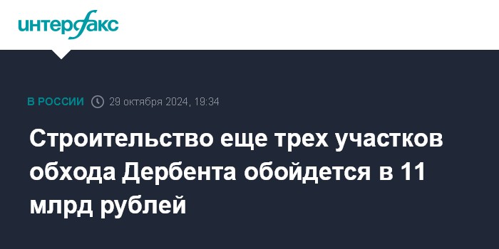 Как сообщалось, Упрдор "Кавказ" ранее уже объявил конкурсы на поиск подрядчика для строительства участков обхода Дербента (V-VII этапы), итоги которых планируется подвести 1 и 2 ноября. На строительство планируется направить порядка 24,6 млрд рублей. По завершении работ планируется запуск четырехполосного движения, транспортных развязок, мостов, путепроводов и тоннеля. Будут также установлены восемь автобусных остановок, построены две площадки для отдыха и две площадки для размещения комплексов услуг и сервисов.