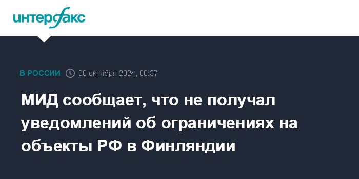 МИД сообщает, что не получал уведомлений об ограничениях на объекты РФ в Финляндии