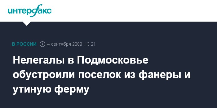 Москва. 4 сентября. INTERFAX.RU - Сотрудниками УФМС по Московской области ликвидирован поселок нелегальных иммигрантов в Мытищинском районе, сообщил "Интерфаксу" в пятницу официальный представитель Управления Федеральной миграционной службы РФ по Московской области Виталий Стрельцов. Дома были построены в лесополосе из подручных материалов в районе Лихачевского шоссе". В данном поселке проживали более 30 нелегалов - в основном граждане Таджикистана и Узбекистана. По его словам, нелегалы особое внимание уделяли подсобному хозяйству, и в озере, которое расположено недалеко от незаконных построек, разводили уток, которых сотрудники УФМС обнаружили более 50 штук. Кроме того, рядом с поселком были найдены парники, в которых нелегалы выращивали овощи. К поселку было незаконно подведено электричество от рынка "Левобережный",