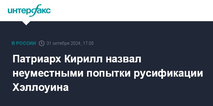Патриарх Кирилл назвал неуместными попытки русификации Хэллоуина