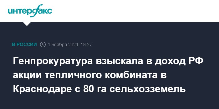 Генпрокуратура взыскала в доход РФ акции тепличного комбината в Краснодаре с 80 га сельхозземель