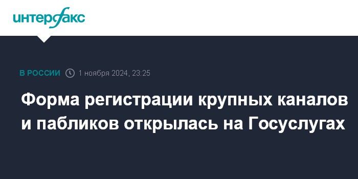 Форма регистрации крупных каналов и пабликов открылась на Госуслугах
