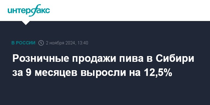Розничные продажи пива в Сибири за 9 месяцев выросли на 12,5%