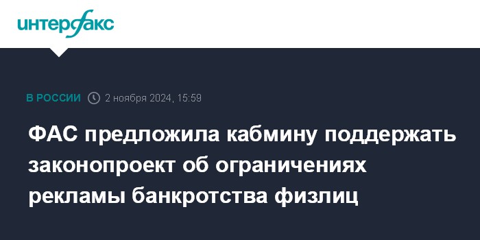 ФАС предложила кабмину поддержать законопроект об ограничениях рекламы банкротства физлиц
