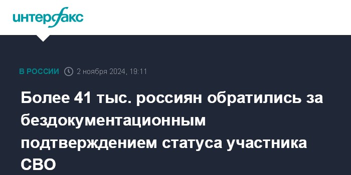 Более 41 тыс. россиян обратились за бездокументационным подтверждением статуса участника СВО