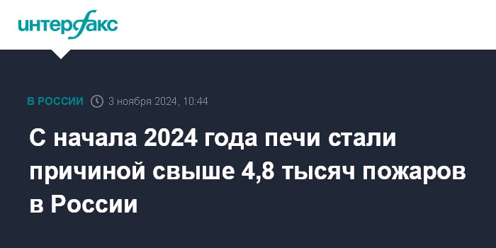 С начала 2024 года печи стали причиной свыше 4,8 тысяч пожаров в России